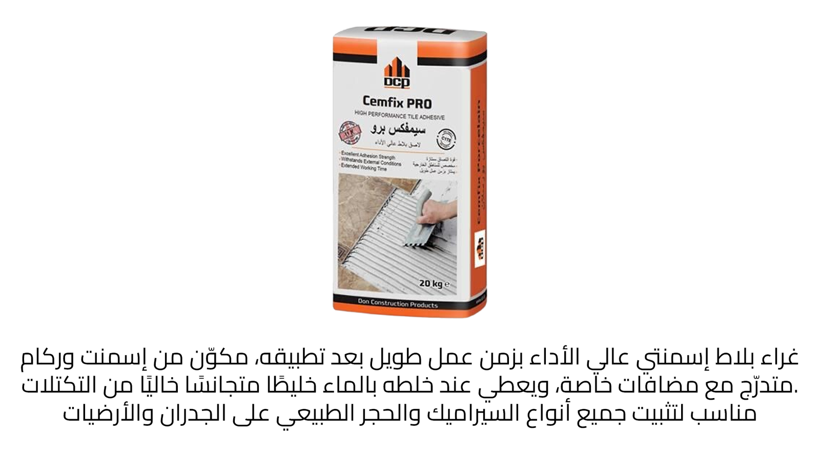 يتوفر لدينا غراء (ELTA)، عالي الجودة بتقنية ألمانية يتمتع بقوة لصق عالية مقاومة للماء والرطوبة، ويستخدم للحوائط والأرضيات والواجهات والأحواش. ضمانة لمدة 25 سنة. كما يتوفر لدينا جميع أنواع الغراء للسيراميك والبورسلين.